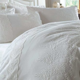 Lenjerie de pat de Lux din Bumbac 100% Satin 200TC, Pat 2 persoane – Dantela Vita – Iz Beyaz