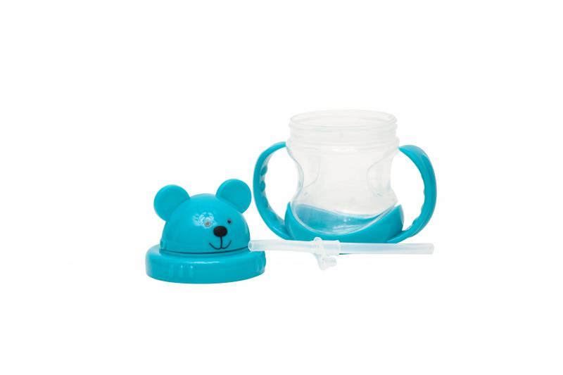 Cana de Antrenament cu Manere, Model Ursulet, 210 ml, Albastru – U-Grow – A-1022