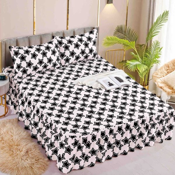 Cearceaf de Pat cu Volanase + 2 Fete de Perna, Bumbac Finet, Pat 2 Persoane – JoJo Home – PUF66390