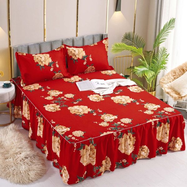 Cearceaf de Pat cu Volanase + 2 Fete de Perna, Bumbac Finet, Pat 2 Persoane – JoJo Home – PUF66391