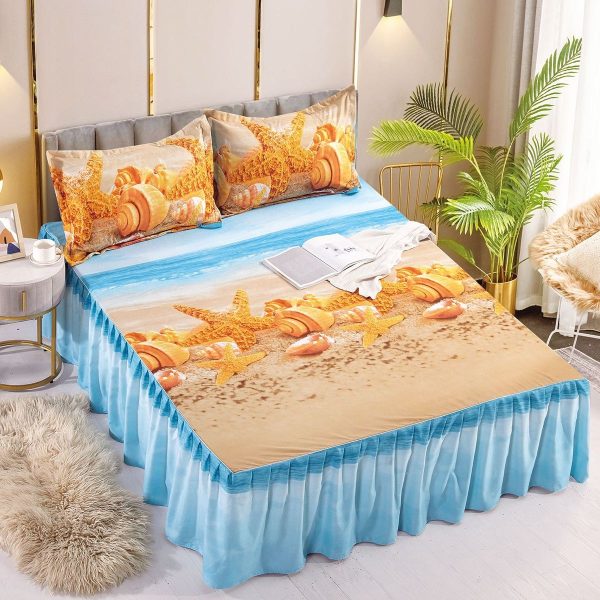Cearceaf de Pat cu Volanase + 2 Fete de Perna, Bumbac Finet, Pat 2 Persoane – JoJo Home – PUF66394