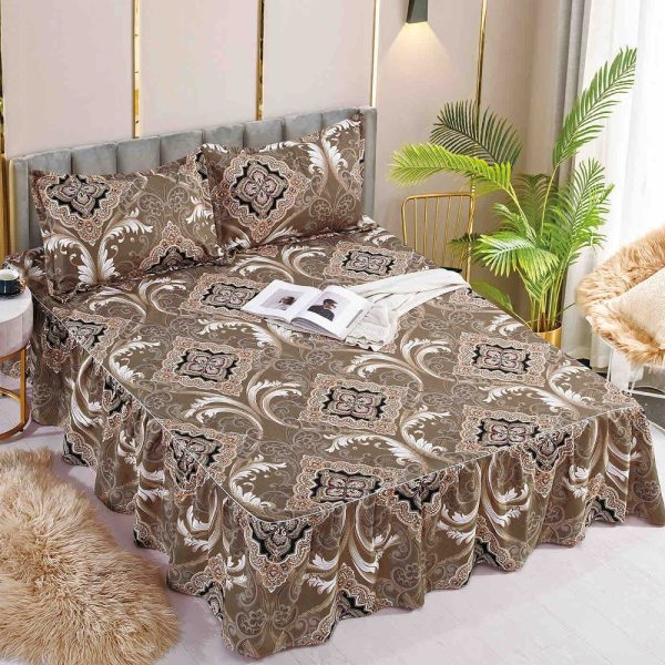 Cearceaf de Pat cu Volanase + 2 Fete de Perna, Bumbac Finet, Pat 2 Persoane – JoJo Home – PUF66400