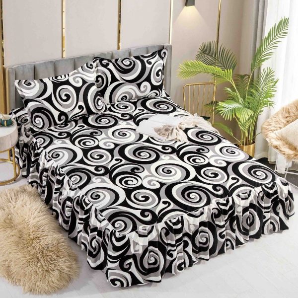 Cearceaf de Pat cu Volanase + 2 Fete de Perna, Bumbac Finet, Pat 2 Persoane – JoJo Home – PUF66401