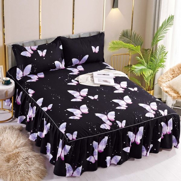 Cearceaf de Pat cu Volanase + 2 Fete de Perna, Bumbac Finet, Pat 2 Persoane – JoJo Home – PUF66404