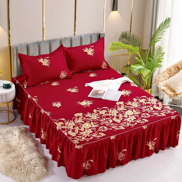 Cearceaf de Pat cu Volanase + 2 Fete de Perna, Bumbac Finet, Pat 2 Persoane – JoJo Home – PUF66405