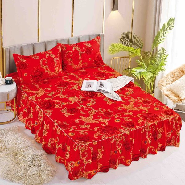 Cearceaf de Pat cu Volanase + 2 Fete de Perna, Bumbac Finet, Pat 2 Persoane – JoJo Home – PUF66406