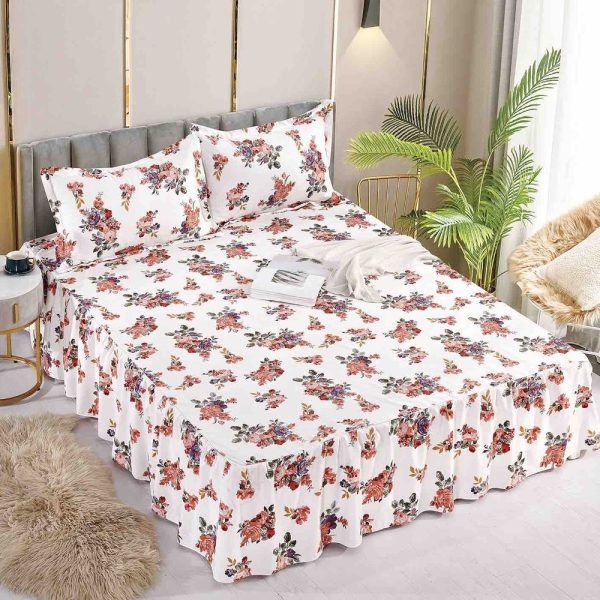 Cearceaf de Pat cu Volanase + 2 Fete de Perna, Bumbac Finet, Pat 2 Persoane - JoJo Home - PUF66414