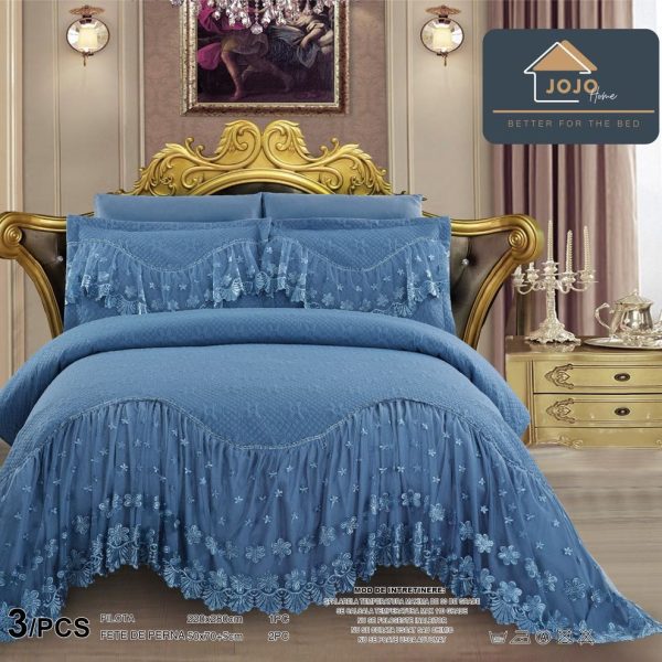 Cuvertura de Lux cu Volanase, 3 Piese, Bumbac Finet, Albastru – JoJo Home – PUF43395