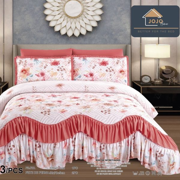 Cuvertura de Lux cu Volanase, 3 Piese, Bumbac Finet – JoJo Home – PUF44236