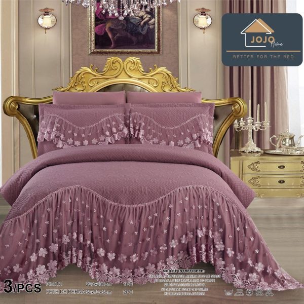 Cuvertura de Lux cu Volanase, 3 Piese, Bumbac Finet, Pudra – JoJo Home – PUF43400