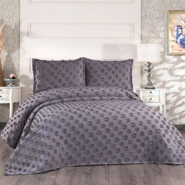 Cuvertura de Lux din Bumbac, 3 Piese, Pat 2 Persoane, 240 x 260cm – Hayal Premium – Gri Inchis – PUF126228