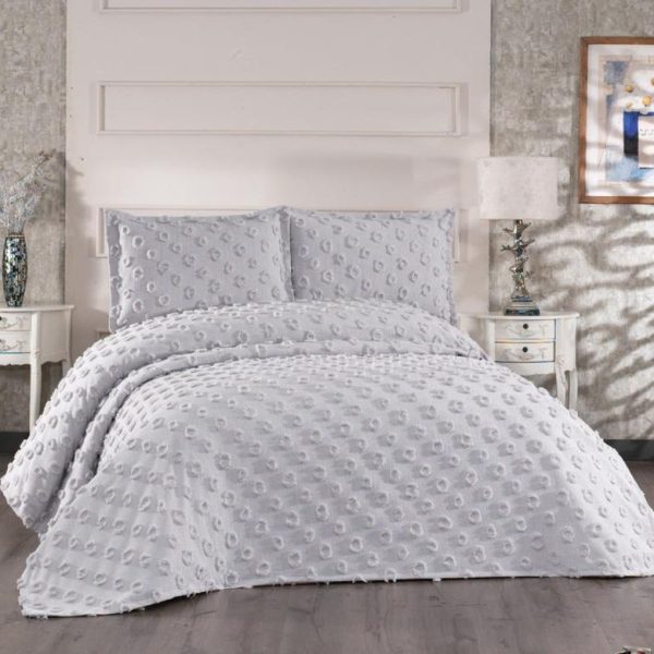 Cuvertura de Lux din Bumbac, 3 Piese, Pat 2 Persoane, 240 x 260cm – Hayal Premium – Gri Deschis – PUF126222