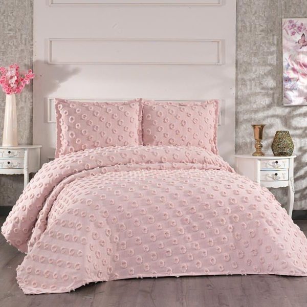 Cuvertura de Lux din Bumbac, 3 Piese, Pat 2 Persoane, 240 x 260cm – Hayal Premium – Roz – PUF126226