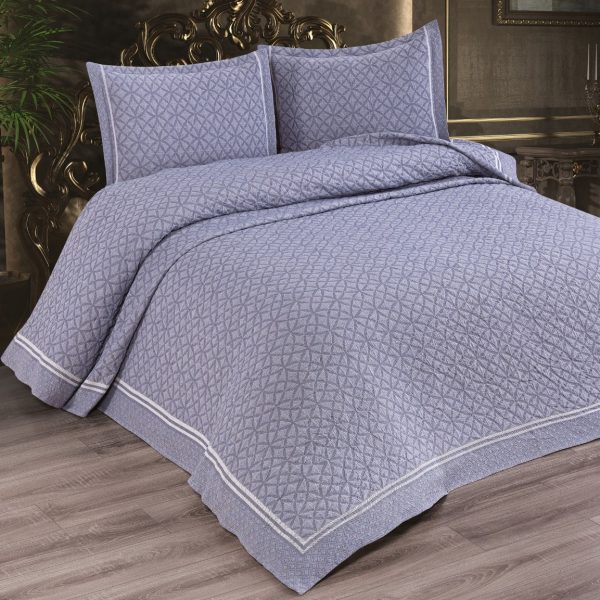 Cuvertura de Lux din Bumbac Jado Holly + 2 Fete de Perna, Tesatura Jacquard, 235x260cm – Gri – PUF79019