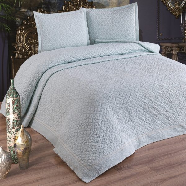 Cuvertura de Lux din Bumbac Jado Holly + 2 Fete de Perna, Tesatura Jacquard, 235x260cm – Menta – PUF79017