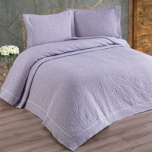 Cuvertura de Lux din Bumbac Jado Jacinthe + 2 Fete de Perna, Tesatura Jacquard, 235x260cm – Lila – PUF79014