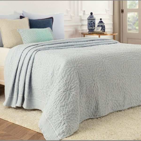 Cuvertura de Lux din Bumbac Jado Jacinthe, Tesatura Jacquard, 235x260cm – Bleu – PUF77754