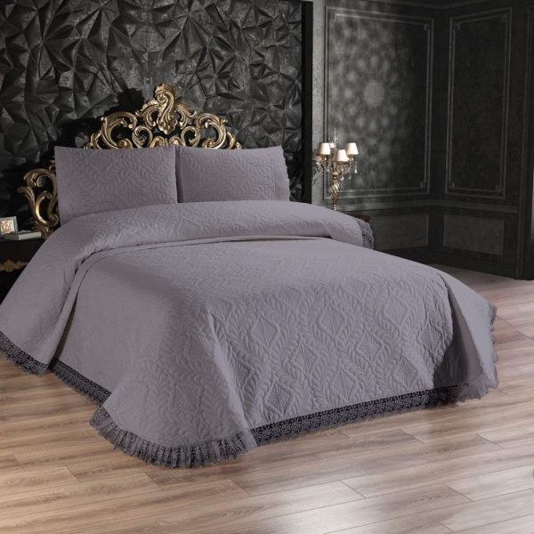 Cuvertura de Pat cu Dantela Sweet Dreams, Model Uni, 220x240cm, 3 Piese – Gri – PUF62918