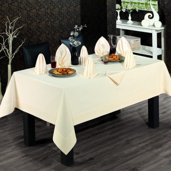 Fata de Masa de Lux din Policoton + 8 Servetele, 160 x 220cm, Crem – Honey – PUF177960