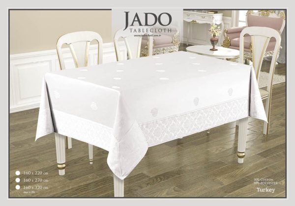 Fata de masa de lux din Policoton cu Bordura, Alb, Tesatura Jacquard – Jado – PUF15755
