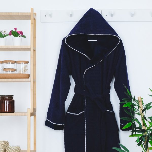 Halat de Baie cu 2 Fete Kareli, Model cu Gluga, Bleumarin – Hobby – PUF43985