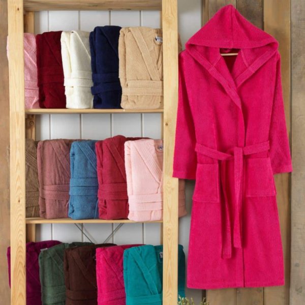Halat de Baie cu Gluga din Bumbac 100%, Magenta, Marime M/L – LuiSa – PUF151503