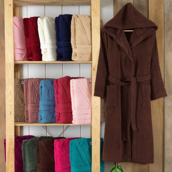 Halat de Baie cu Gluga din Bumbac 100%, Maro Inchis, Marime XL/XXL – LuiSa – PUF151493