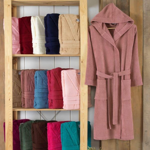 Halat de Baie cu Gluga din Bumbac 100%, Pudra, Marime M/L – LuiSa – PUF151497