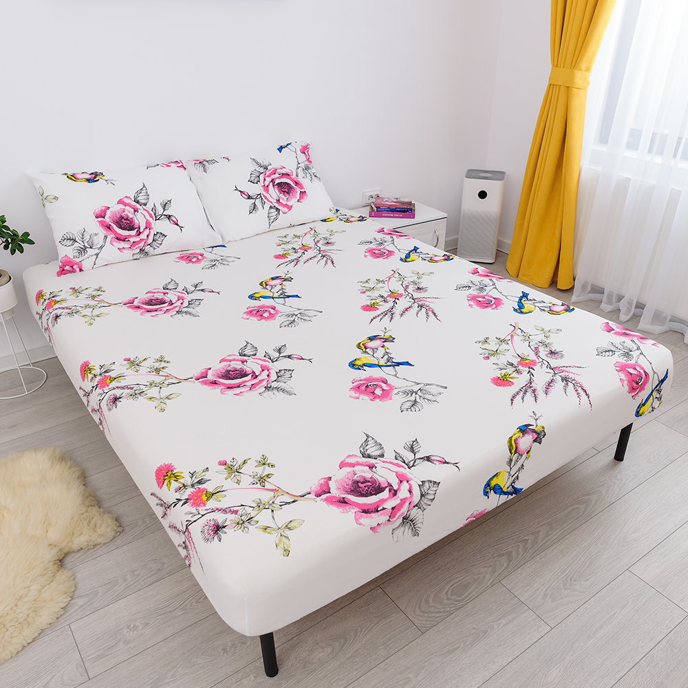 Continut pachet: 1 x cearceaf de pat cu elastic (160 x 200cm) + 2 fete de perna (50 x 70cm)