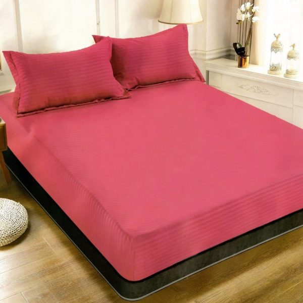 Husa de Pat cu Elastic din Bumbac + 2 Fete de Perna, Model Damasc, Pat 2 Persoane – PUF61012-03