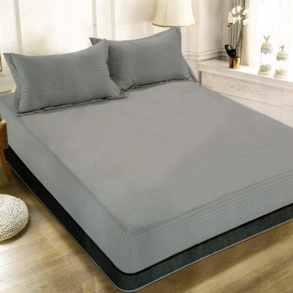 Husa de Pat cu Elastic din Bumbac + 2 Fete de Perna, Model Damasc, Pat 2 Persoane – PUF61019-09
