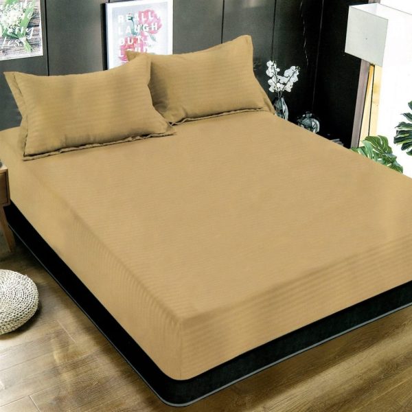 Husa de Pat cu Elastic din Bumbac + 2 Fete de Perna, Model Damasc, Pat 2 Persoane – PUF61038-14