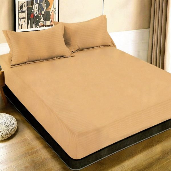 Husa de Pat cu Elastic din Bumbac + 2 Fete de Perna, Model Damasc, Pat 2 Persoane – PUF61045-19