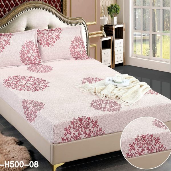 Set Husa de Pat cu Elastic din Tercot cu Broderie + 2 Fete Perna, Pat 2 Persoane – East Comfort – PUF57961-H500-08