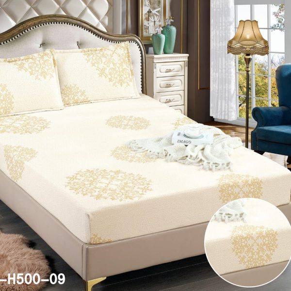Set Husa de Pat cu Elastic din Tercot cu Broderie + 2 Fete Perna, Pat 2 Persoane – East Comfort – PUF57962-H500-09