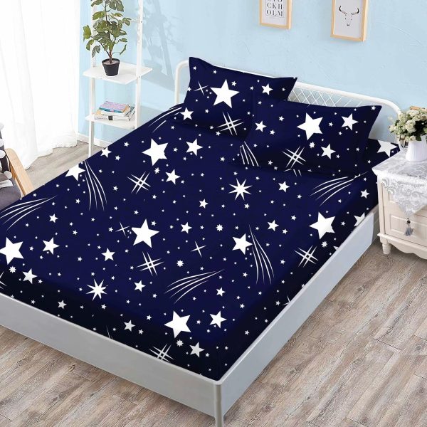 Husa de pat cu elastic din Bumbac Finet + 2 Fete de Perna, Pat 2 Persoane, Falling Stars – Sky Home – PUF66033