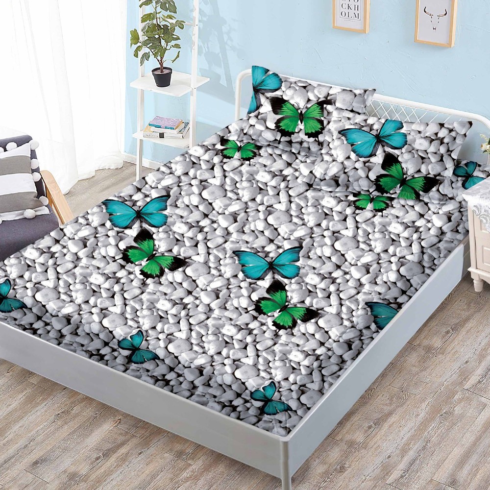 Husa de pat cu elastic din Bumbac Finet + 2 Fete de Perna, Pat 2 Persoane, Pietre – Sky Home – PUF66036