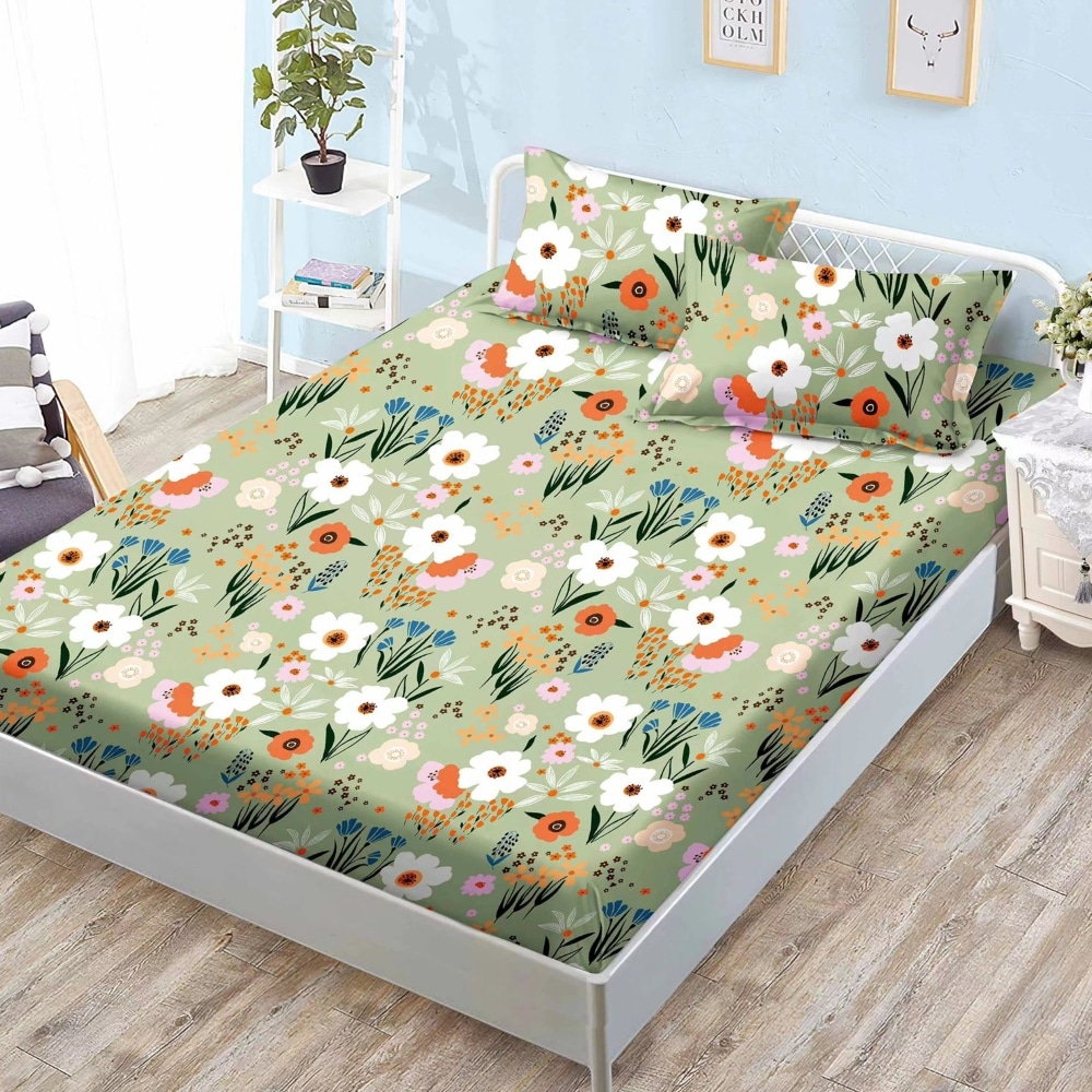 Husa de pat cu elastic din Bumbac Finet + 2 Fete de Perna, Pat 2 Persoane – Sky Home – PUF92478