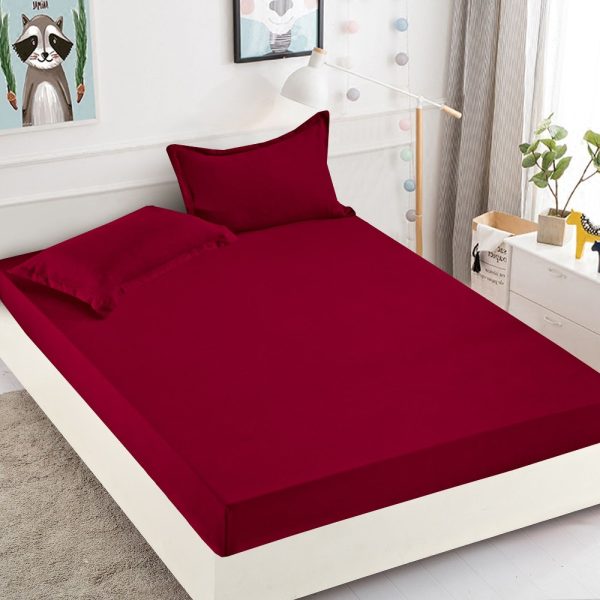 Husa de Pat cu Elastic Uni + 2 Fete de Perna, Bumbac Finet, Pat 2 Persoane – Grena – PUF85914