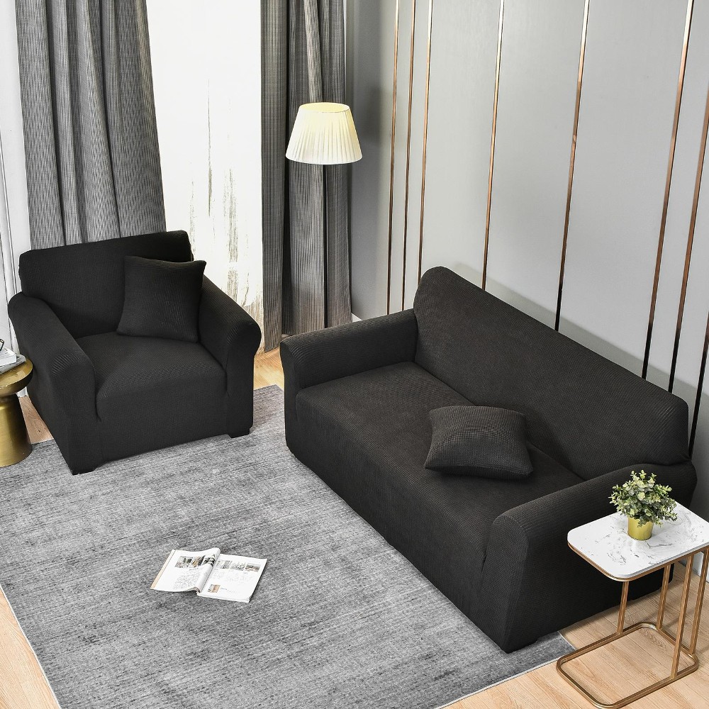 Set Husa Elastica pentru Fotoliu + Fata de Perna, Model Cocolino – Negru – PUF31812