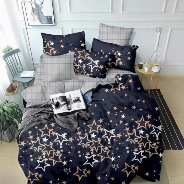 Lenjerie Bumbac Finet Superior, 4 Piese, Pat 1 Persoana, Golden Stars – Jo Jo Design – PUF9762