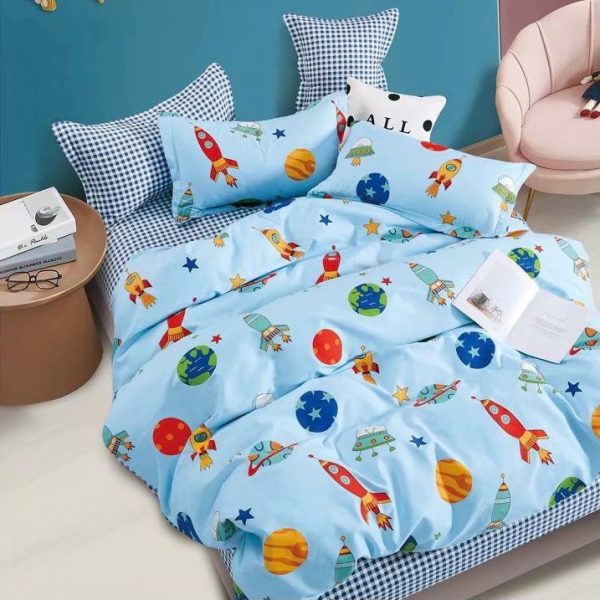 Lenjerie Bumbac Finet Superior, 4 Piese, Pat 1 Persoana Blue Rocket – Jo Jo Design – PUF40302