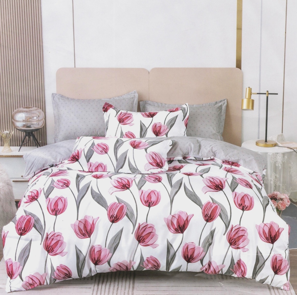 Lenjerie de pat din bumbac satinat pentru doua persoane. Lenjeriile noastre au o tesatura extrem de fina, placuta la atingere si iti ofera tot confortul de care ai nevoie indiferent de sezon. Datorita calitatii superioare a tesaturii, culorile si imprimeurile vor ramane intacte chiar si dupa multiple spalari sau calcari.