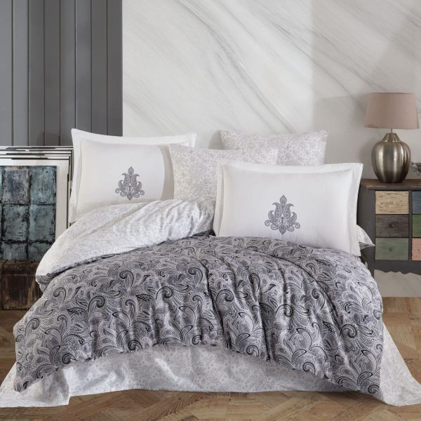 Lenjerie de Lux din Bumbac 100% Satin, Densitate 200TC, Pat 2 Persoane – Hobby Mirabel Gri – PUF143272