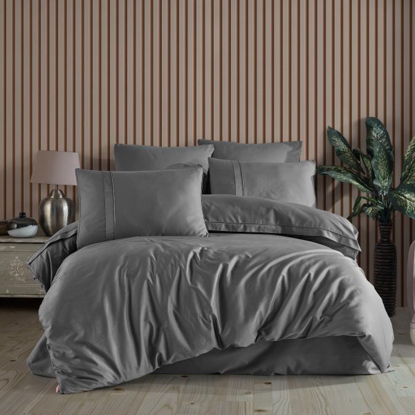Lenjerie de Lux din Bumbac 100% Satin, Densitate 300TC, Pat 2 Persoane – Hobby Plain – Gri Antracit – PUF142903