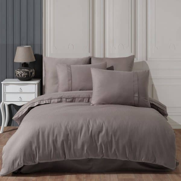 Lenjerie de Lux din Bumbac 100% Satin, Pat 2 Persoane – Hobby Strippe – Camel