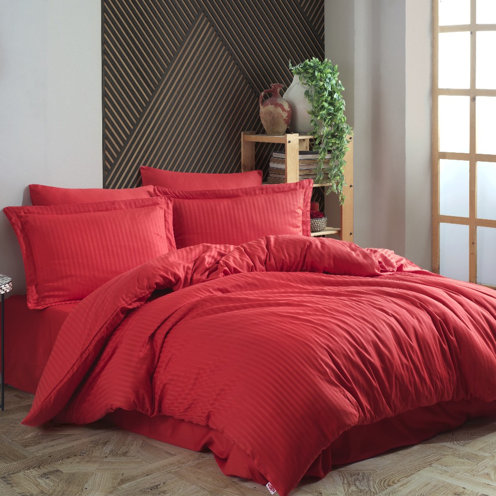 Lenjerie de Lux din Bumbac 100% Satinat, Pat 2 Persoane – Hobby Diamond Damasc – Rosu – PU66048