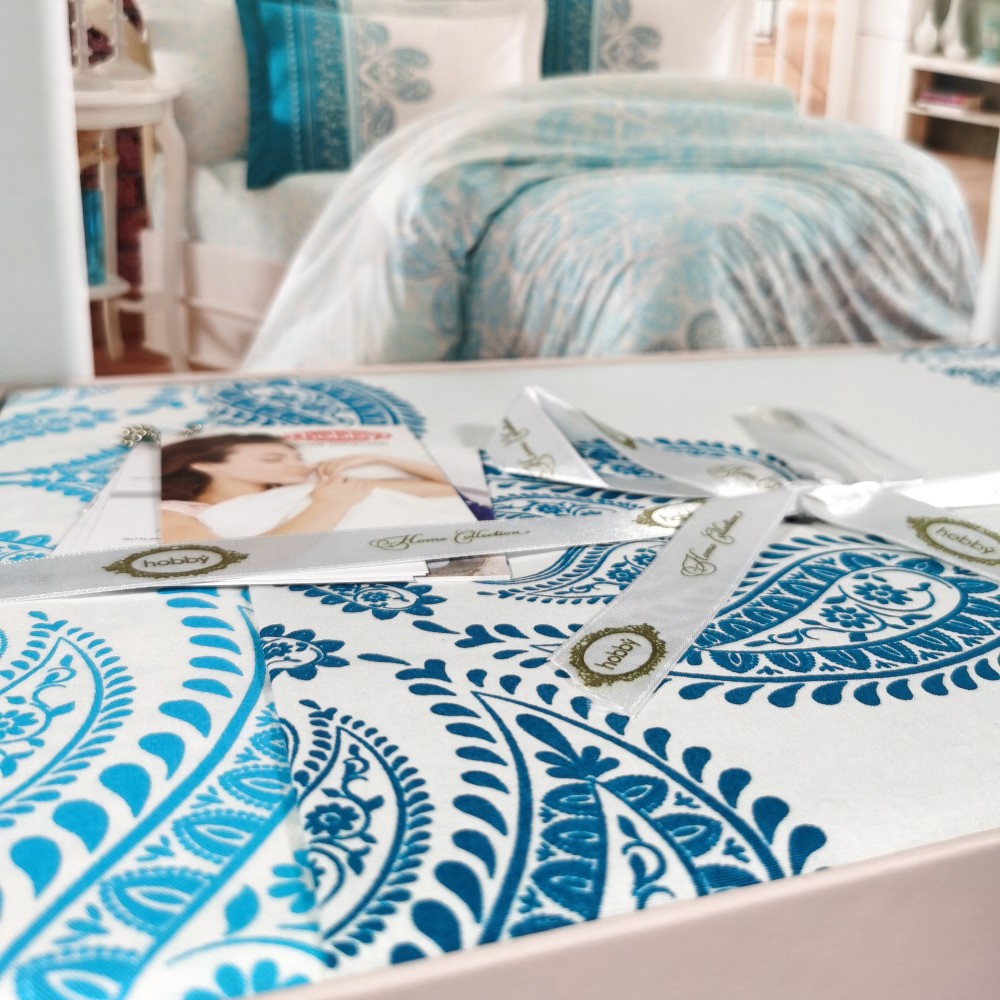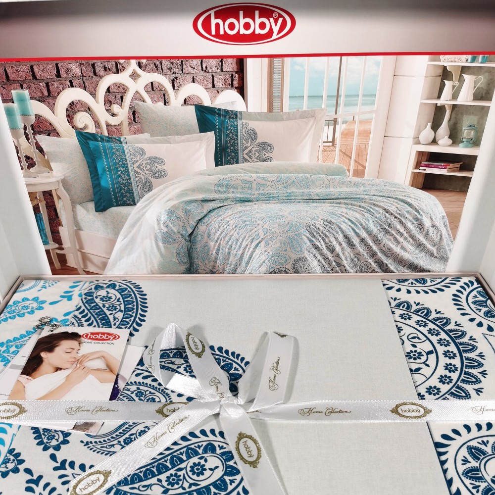 Lenjerie de pat din Bumbac 100% Poplin, 4 Piese, Pat 2 Persoane – Hobby – Irene Turquoise