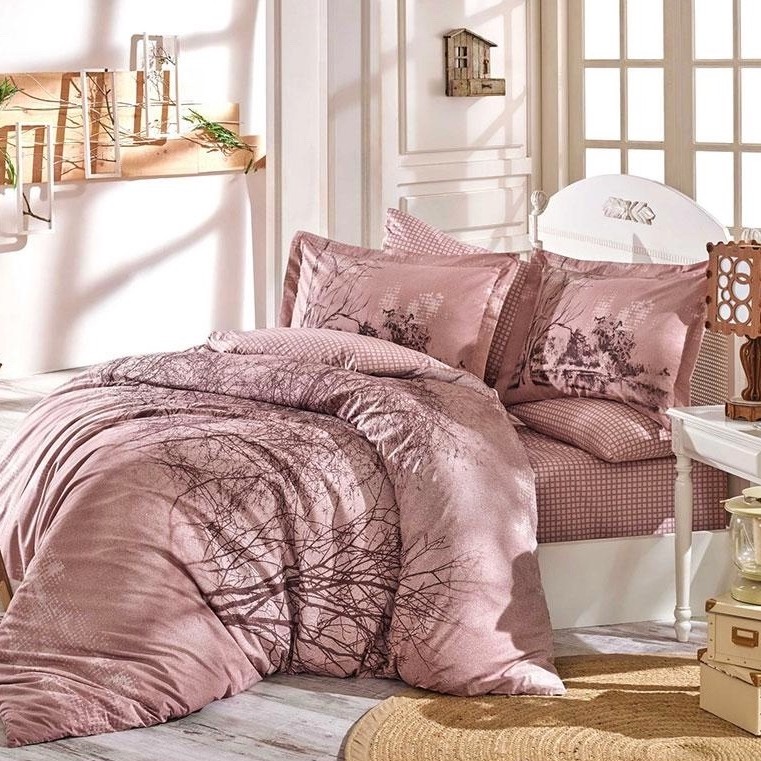 Lenjerie de pat din Bumbac 100% Poplin, 4 Piese, Pat 2 Persoane – Hobby – Margherita Brown