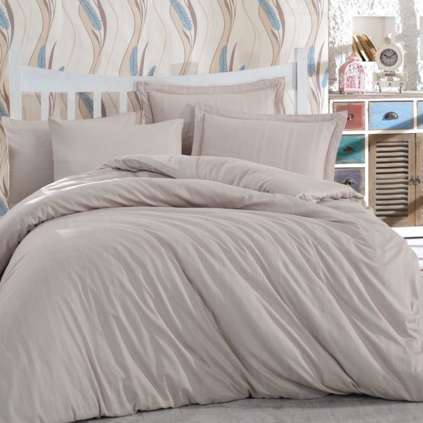 Lenjerie de Lux din Bumbac 100% Satin, Pat 2 Persoane – Hobby Strippe – Beige